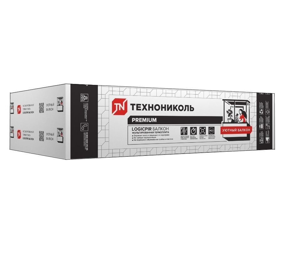 LOGICPIR Балкон Ф/Ф 1200х600х20 используются при утеплении и обустройстве балконов и лоджий.