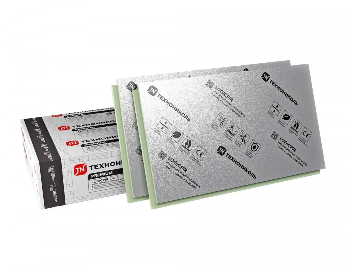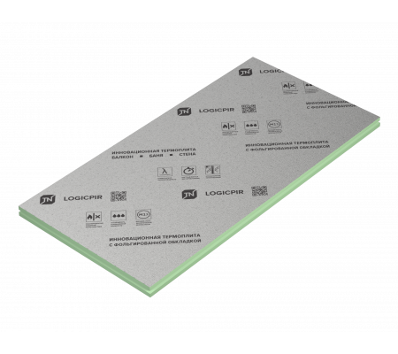 Плиты LOGICPIR изготавливаются из пенополиизоцианурата (модифицированного пенополиуритана) и покрывается с двух сторон слоем фольги. Фольга выполняет функцию пароизоляции при проклейке швов фольгированным скотчем.