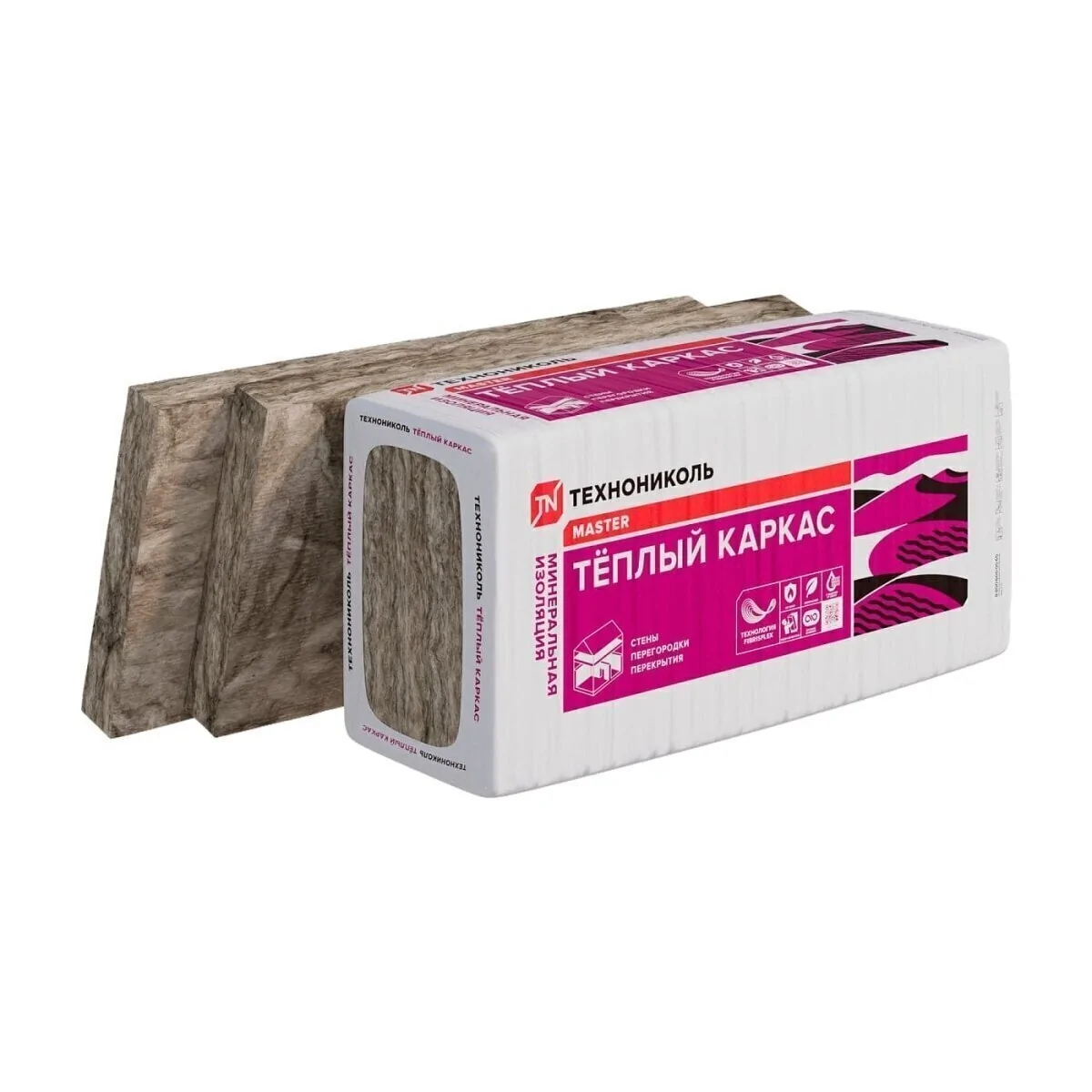 Теплый каркас ТЕXНОНИКОЛЬ – это минераловатные плиты, произведены с добавлением кварцевого песка, полевого шпата, доломита, соды, бура и стеклобоя.